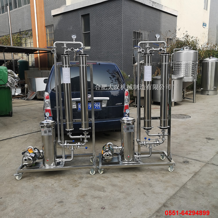 传统工艺:葡萄酒→处理→硅藻土粗过滤→纸板澄清过滤→微孔膜除菌过滤→灌装 错流膜工艺:葡萄酒→处理→错流膜澄清(除菌)过滤→微孔膜除菌过滤→灌装 二、应用优势 1、简化过滤工艺,仅仅等同于圆盘式硅藻土过滤设备的错流膜设备投资,直接省却纸板过滤的设备支出。 2、以简单稳定的自动化操作代替繁琐、不可靠的硅藻土、纸板操作工艺,降低工人数量和劳动强度,杜绝工人操作水平对产品质量的影响。 3、过滤精度优于传统工艺,能显著提高澄清度,使葡萄酒更富光泽感,并稳定达到出酒微生物指标低于50个/毫升的国家卫生标准。 4、滤去果酒中影响非生物稳定性的胶体颗粒物质和大分子蛋白质,显著提高果酒的非生物稳定性,解决果酒的沉淀问题。 5、膜过滤对葡萄酒中有效的醇类、酸类和干浸出物等理化指标和口感基本无影响。 6、滤膜实际使用寿命达到2-5年,抛弃昂贵的纸板更换费用,其运行费用能节约50%,甚至更低。 目前我公司的葡萄酒膜分离技术与设备已在葡萄冰酒、葡萄干红、自酿葡萄酒上成功应用数年。在山楂酒、猕猴桃酒、无花果酒、蓝莓酒、木瓜酒、树莓酒等一系列果酒上也得到广泛应用。